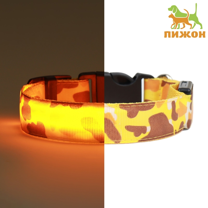 Ошейник с подсветкой "Милитари", 3 режима свечения, жёлтый