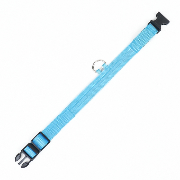 Ошейник с подсветкой размер М, ОШ 40-48 х 2,5 см, 3 режима свечения голубой
