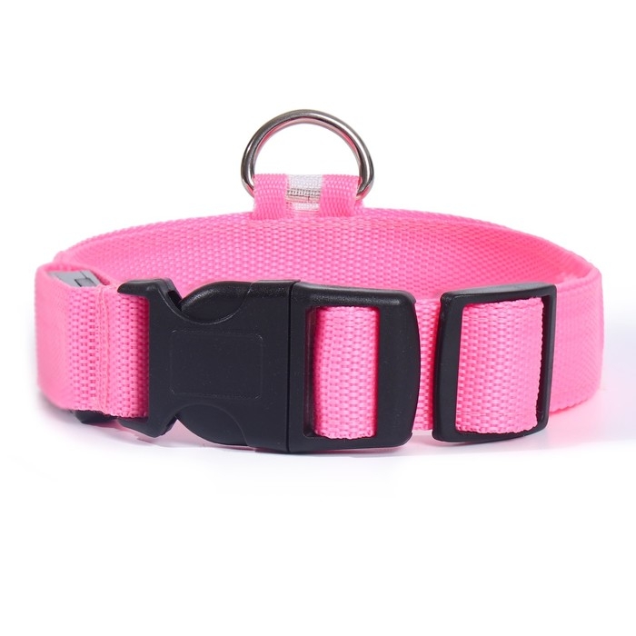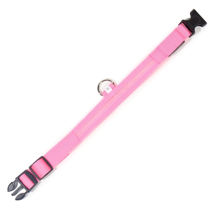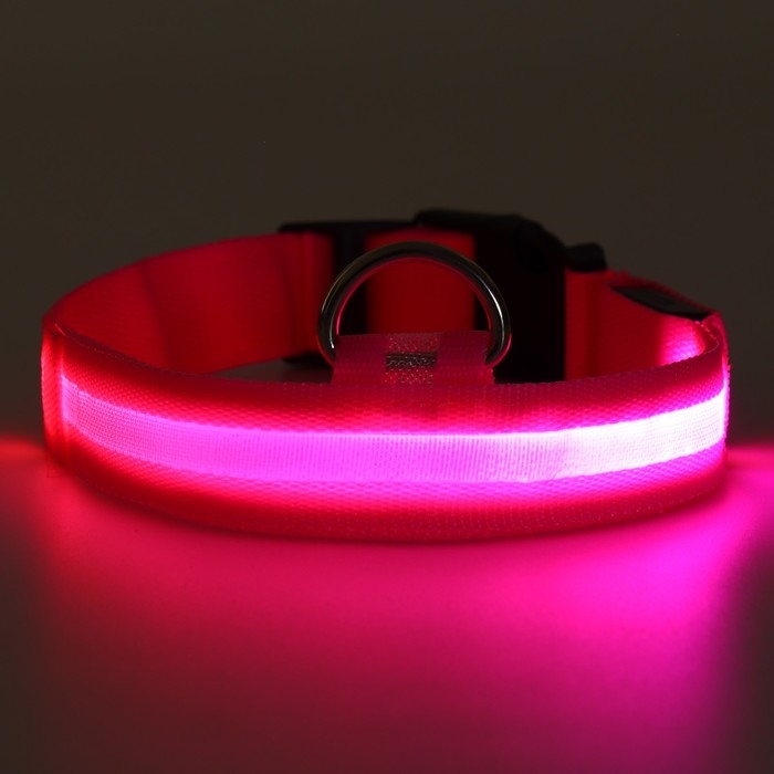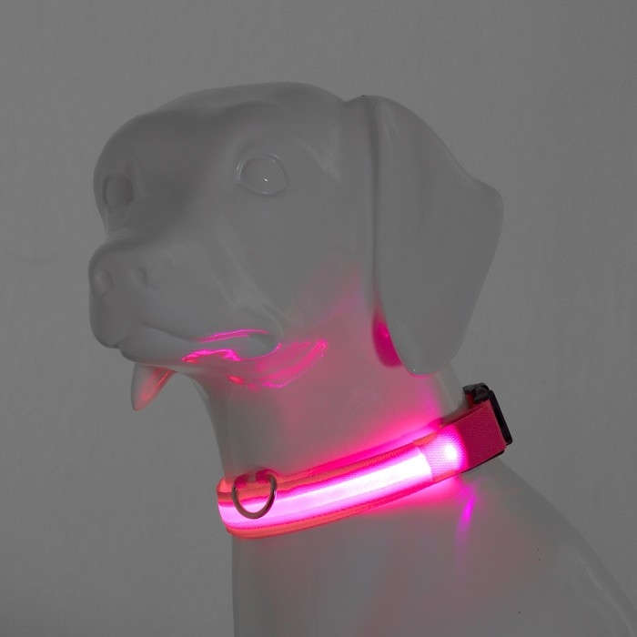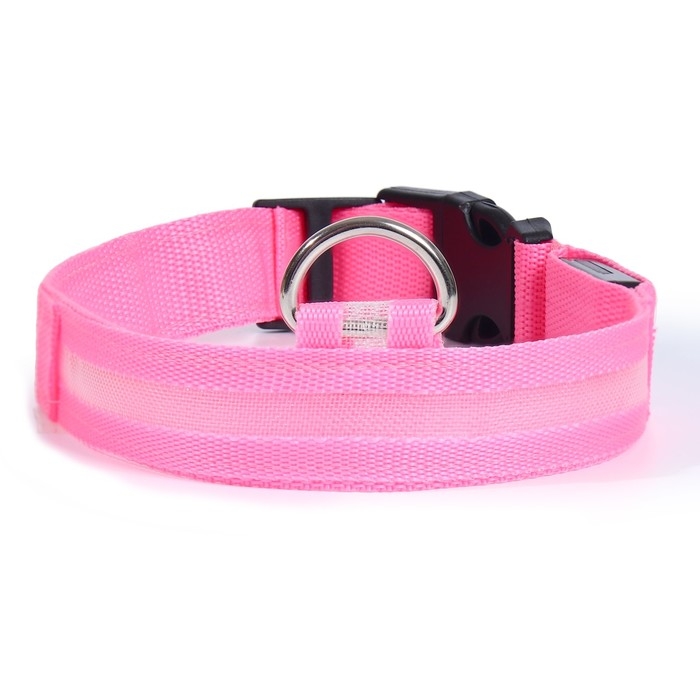 Ошейник с подсветкой размер М, ОШ 40-48 х 2,5 см, 3 режима свечения розовый