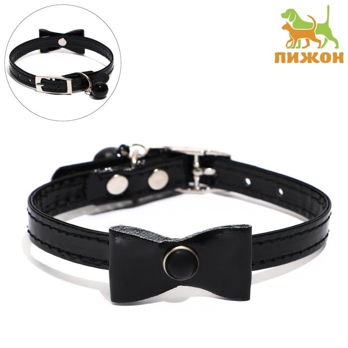 Ошейник "Сияние" с бусиной и бубенчиком, 29 х 1 см, ОШ 21-26, чёрный