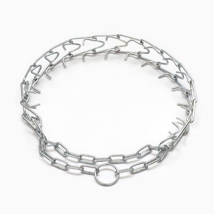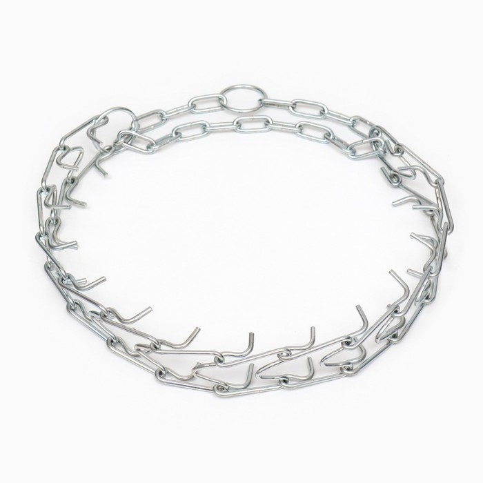 Строгий ошейник станет вашим надежным помощником в вопросах воспитания и дисциплины вашего питомца. Ошейник подойдёт собакам средних и крупных пород.Ошейник выполнен из металла, который покрыт антикоррозийным слоем, устойчивый к механическим повреждениям. Способен выдержать большие нагрузки и резкие рывки.Звенья ошейника съёмные, это позволит вам отрегулировать ошейник под размеры вашего питомца для плотного прилегания.Строгий ошейник для воспитания особо активных и сильных собак, а также сторожевых и бойцовских.При рывке собаки, ошейник сокращается в диаметре, поднимаются специально отогнутые проволочные зубья, приносящие собаки неприятные ощущения. Питомец, каким бы активным он ни был, быстро понимает, что дергать поводок нельзя. Таким образом, воспитывается дисциплина и подчинение хозяину.Хотим обратить ваше внимание, такой ошейник не предназначен для повседневного использования.