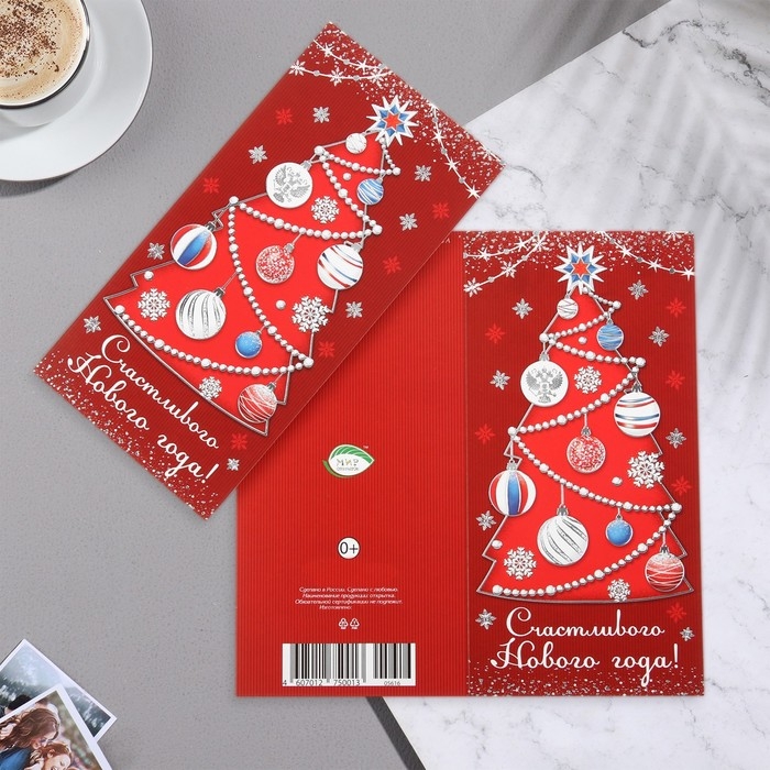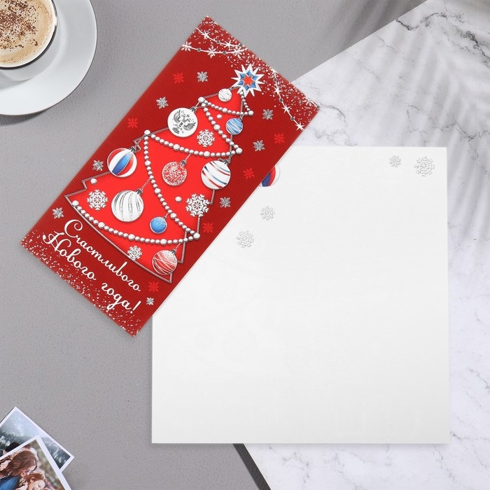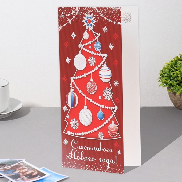 Открытка-евро "Счастливого Нового Года!" конгрев, тиснение, ель, 10,5х21,5 см