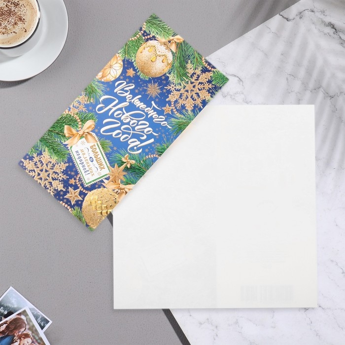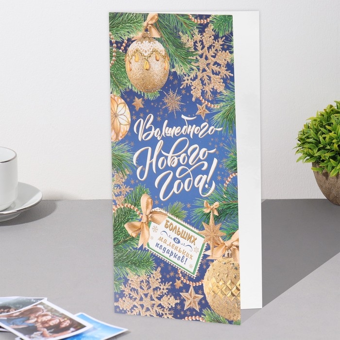 Открытка-евро "Волшебного Нового Года!" глиттер, конгрев, ветки ели, 10,5х21,5 см