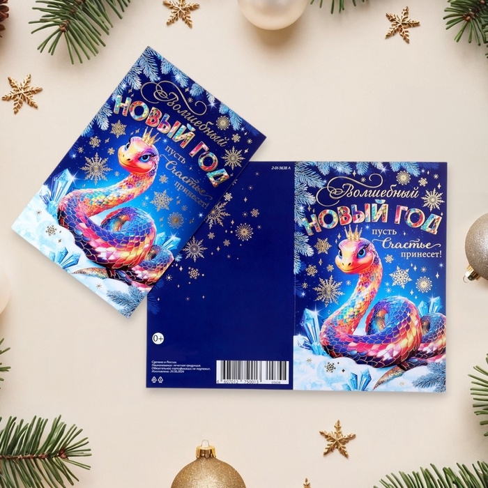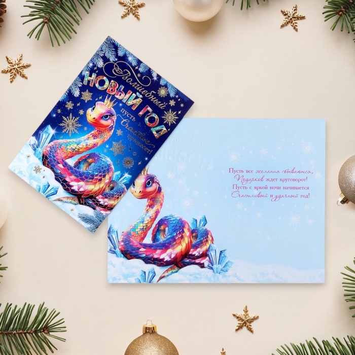Открытка-евро "Волшебный Новый Год!" конгрев, тиснение, символ года, 11 х 21,5 см
