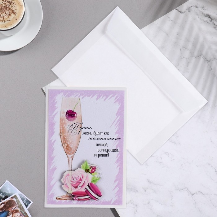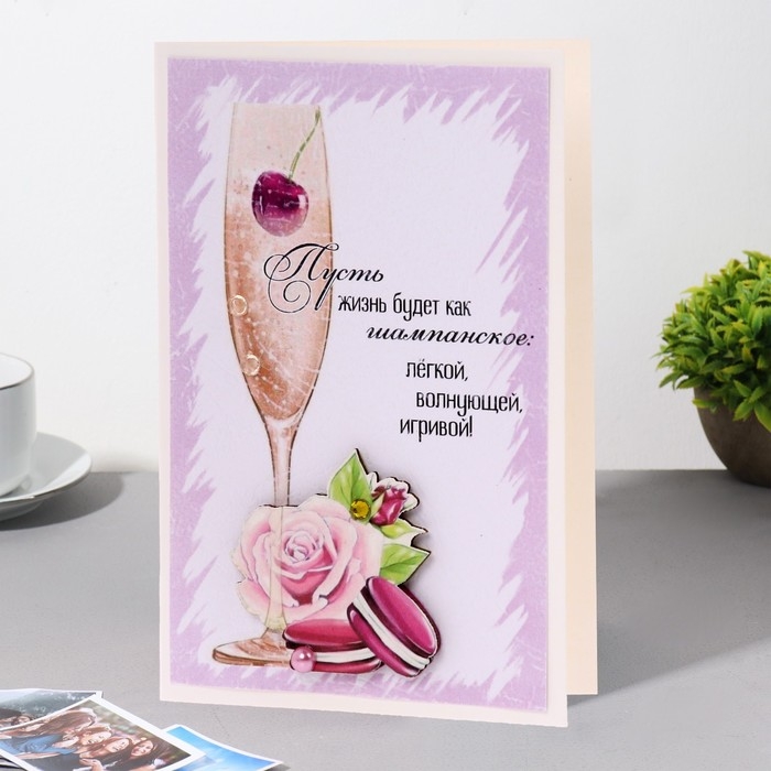 Открытка "Пусть жизнь будет..." ручная работа, бокал, 11,5х17 см