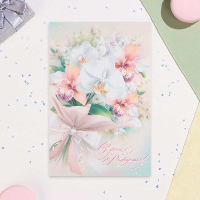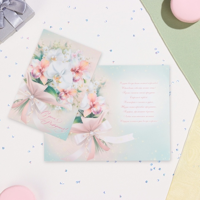 Открытка "С Днём Рождения!" глиттер, конгрев, бант, 19 х 29 см