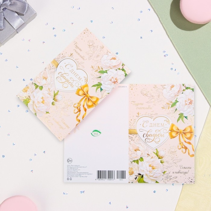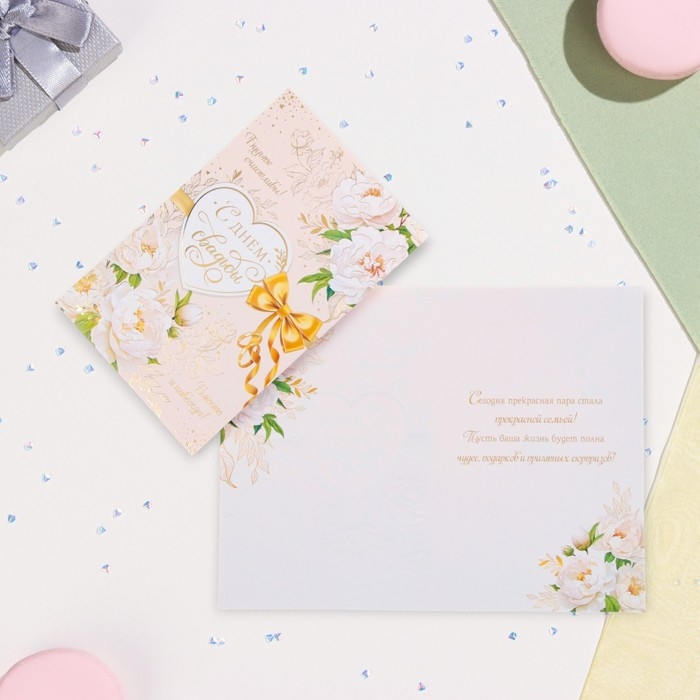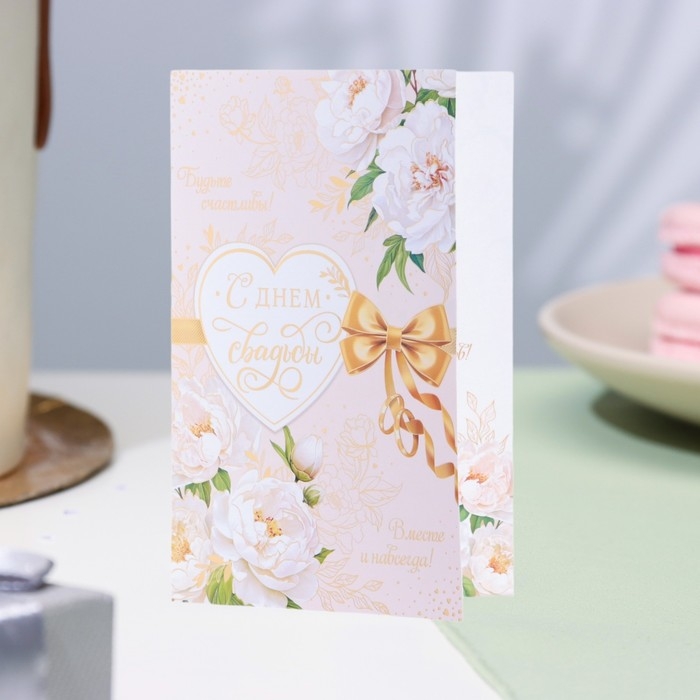 Открытка "С Днём Свадьбы!" бант, тиснение, конгрев, А5
