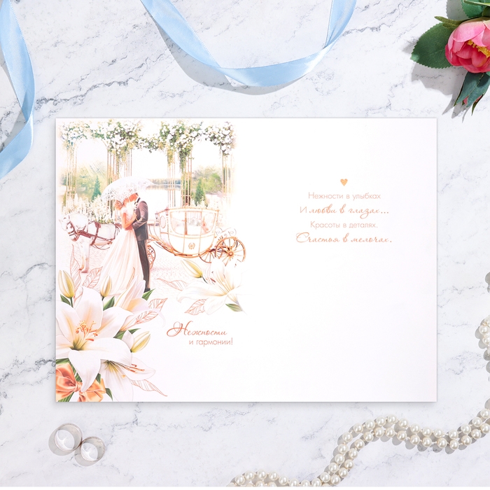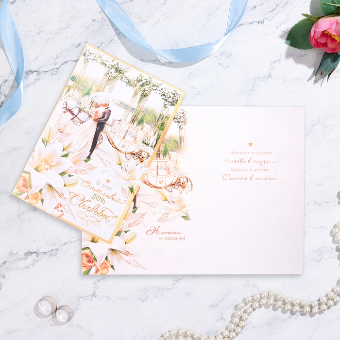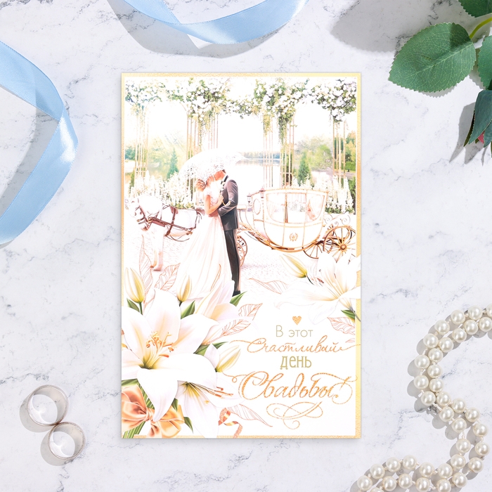 Открытка "С Днём Свадьбы!" пара у кареты, А4