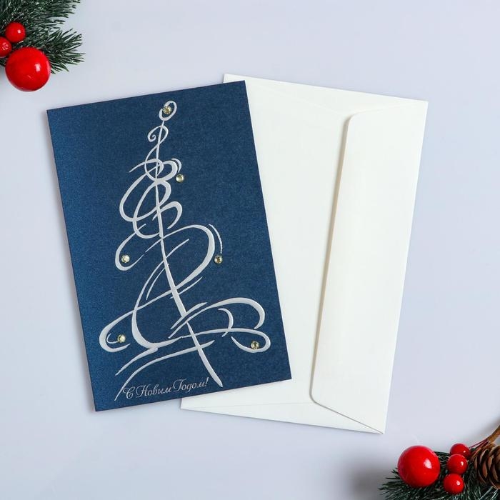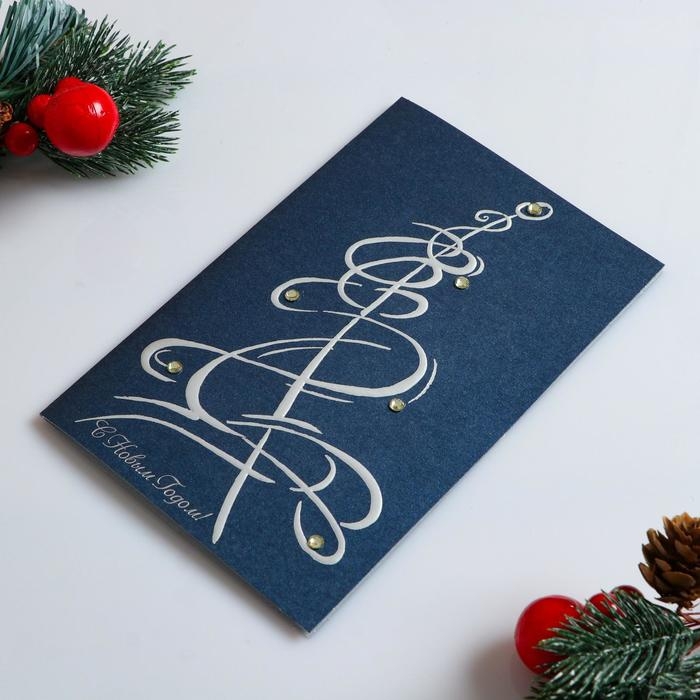 Открытка "С Новым Годом!" ручная работа, бархатный картон, Ёлка, стразы