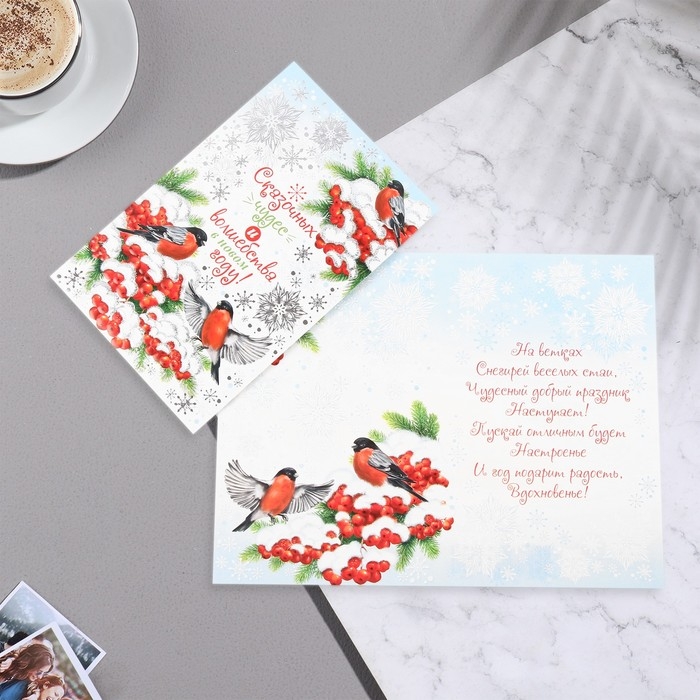 Открытка "Сказочных чудес и волшебства в Новом Году!" конгрев, тиснение,12,5х19,5 см