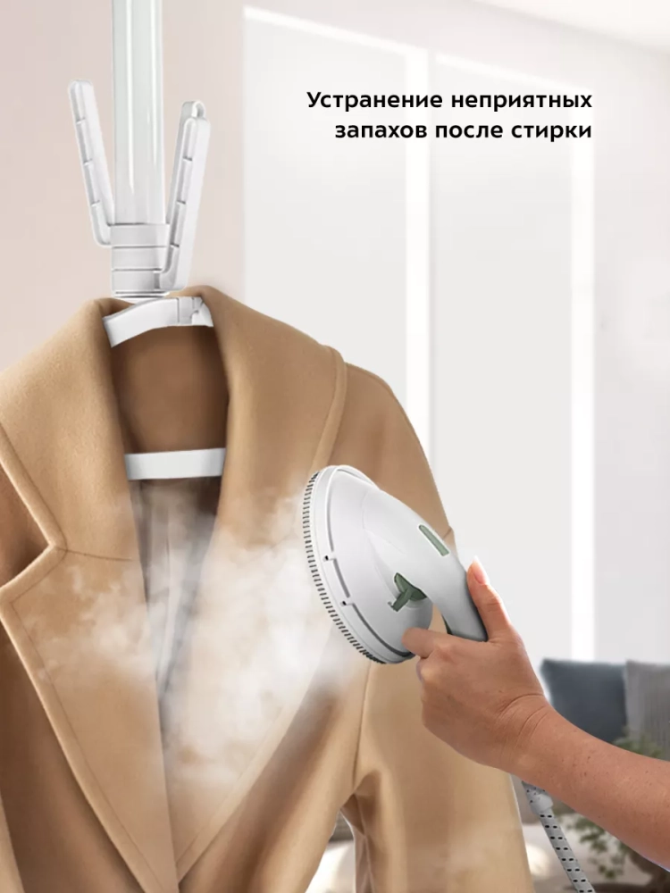 У утюжка отпаривателя тефлоновое покрытие. Поверхность утюжка нагревается до При необходимости вы можете прогладить одежду как обычным утюгом, не включая подачу пара.