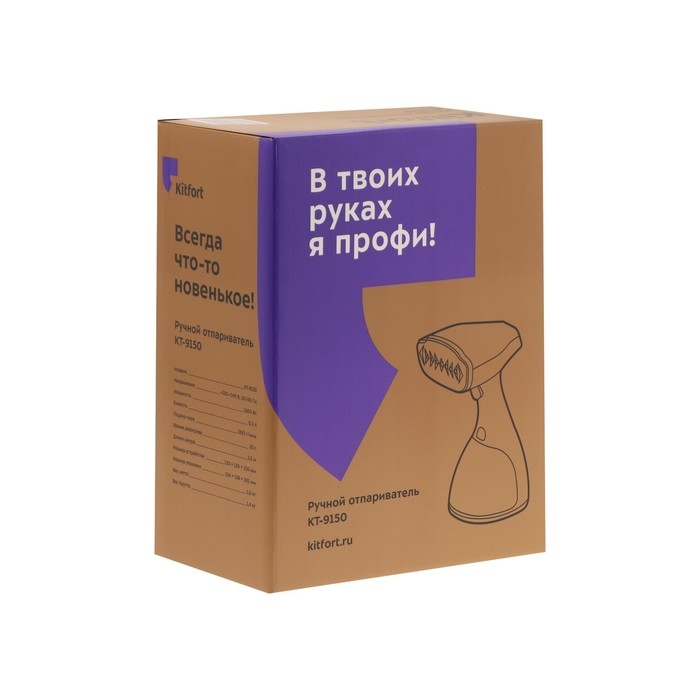 Отпариватель Kitfort KT-916-2, ручной, 1000 Вт, 260 мл, 20 г/мин, шнур 1.7 м, фиолетовый
