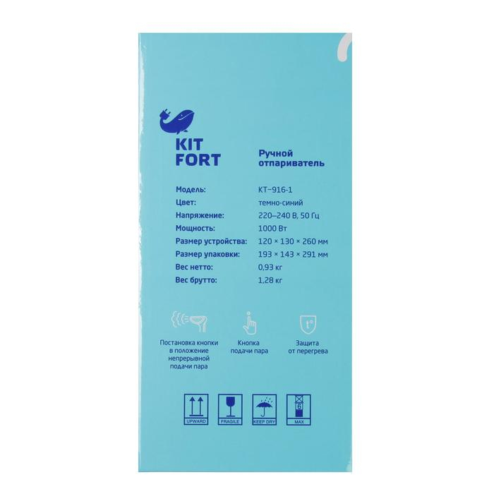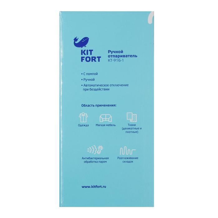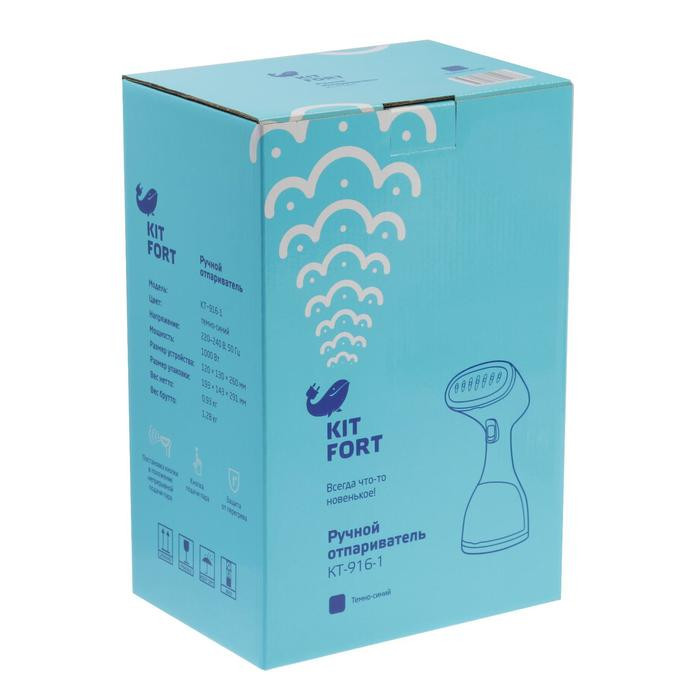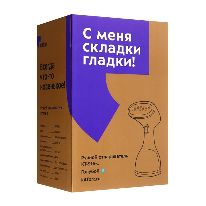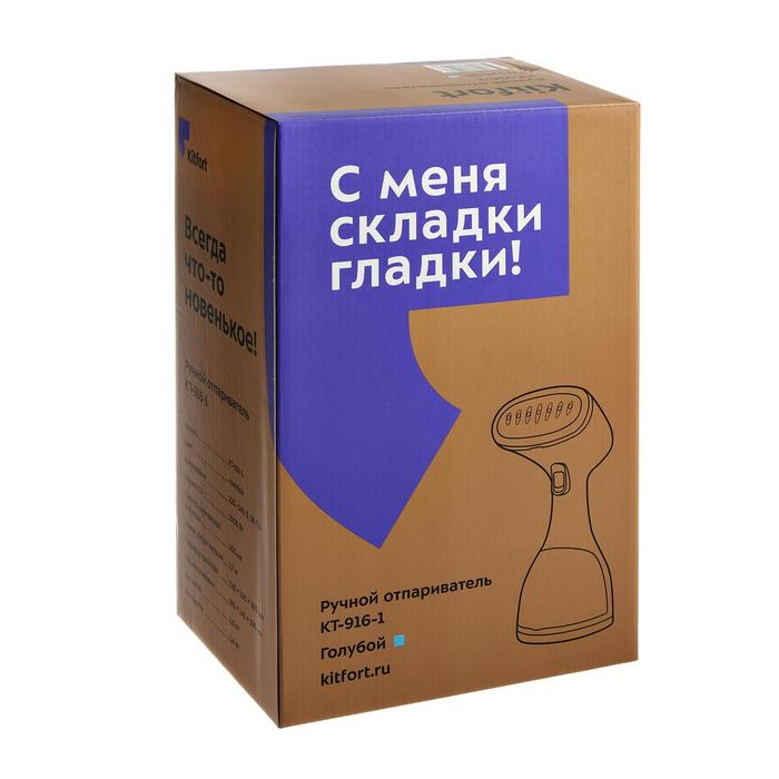 Отпариватель Kitfort KT-916-1, ручной, 1000 Вт, 260 мл, 20 г/мин, шнур 1.7 м, бело-синий