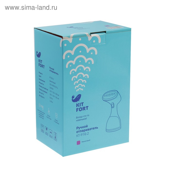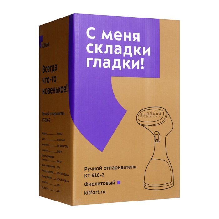 Отпариватель Kitfort KT-916-2, ручной, 1000 Вт, 260 мл, 20 г/мин, шнур 1.7 м, фиолетовый