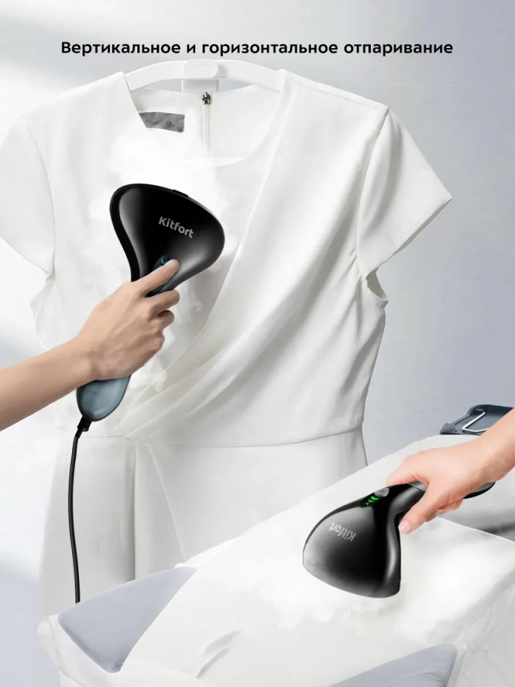 Отпариватель — устройство для разглаживания изделий из текстиля с помощью потока горячего пара. Ручной отпариватель Kitfort КТ-9116 обладает такими достоинствами, как: стильный дизайн, компактность и удобство использования. Отпариватель занимает мало места в чемодане или на полке. Его удобно брать с собой в дорогу. Ручной отпариватель приведет в порядок вещи быстро и практически в любом месте — без раскладывания гладильной доски. Одежда при этом может висеть на вешалке, на сушилке для белья или на веревке. Ручной отпариватель — более функциональное и универсальное устройство, чем утюг. Под действием пара волокна ткани не растягиваются и не сжимаются, как под воздействием утюга, а приобретают объемность и эластичность. Отпариватель не деформирует ткани и не оставляет заломов или лоснящихся пятен на одежде. Помимо отпаривания одежды, вы можете отпарить занавески и портьеры (для этого их не обязательно снимать), обивку мягкой мебели, матрасы или мягкие игрушки. При этом вы не только разгладите складки и вернете форму вещам, но и освежите и продезинфицируете их, так как горячий пар хорошо убивает пылевых клещей и другие микроорганизмы. Благодаря мощному потоку пара ручной отпариватель позволяет разгладить даже те вещи, которые обычно не гладят — пышные платья со сложной структурой, шубы, дубленки или куртки. Также с его помощью можно готовить к сезону вещи, у которых при хранении появился затхлый запах — отпариватель эту проблему решает без всякой стирки. Горячий пар устраняет неприятные запахи и освежает ткани, поэтому он отлично поможет в ситуации, когда вы один раз надевали вещь и хотите сделать это еще раз, не стирая ее. Если вы находились в помещении, полном сигаретного дыма, и одежда пропахла табаком, то с помощью отпаривателя можно быстро убрать запах и освежить ее.
