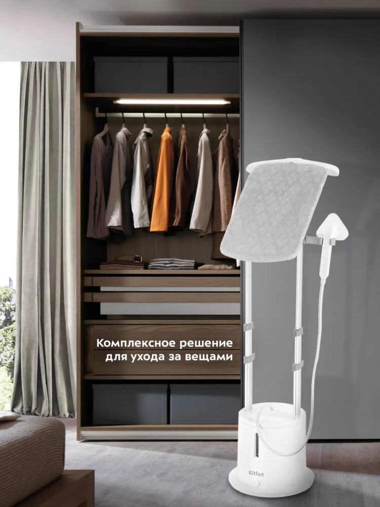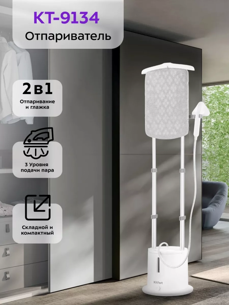 Отпариватель Kitfort КТ-9134 позволяет быстро прогладить любые вещи и изделия из текстиля.