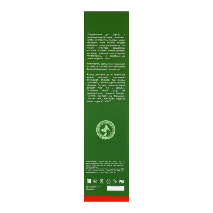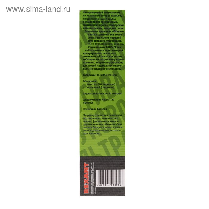 Отпугиватель кротов Rexant 71-0007, ультразвуковой, на солнечной батарее, 30 м