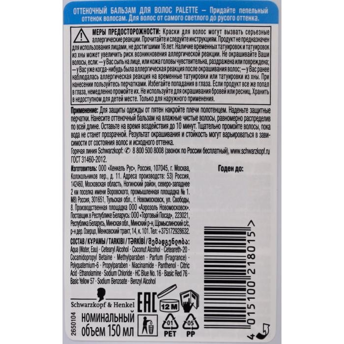 Оттеночный бальзам Палетт Пепельный блонд, 150 мл