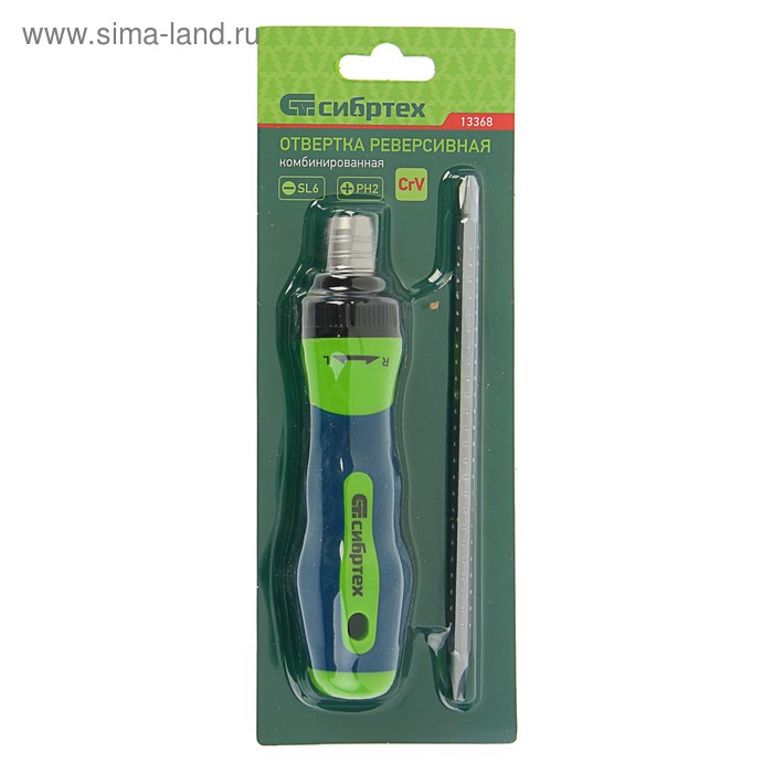 Отвёртка 2 в 1 "СИБРТЕХ", CrV, реверсивная, комбинированная