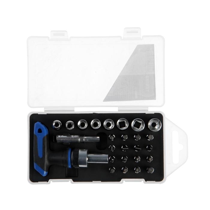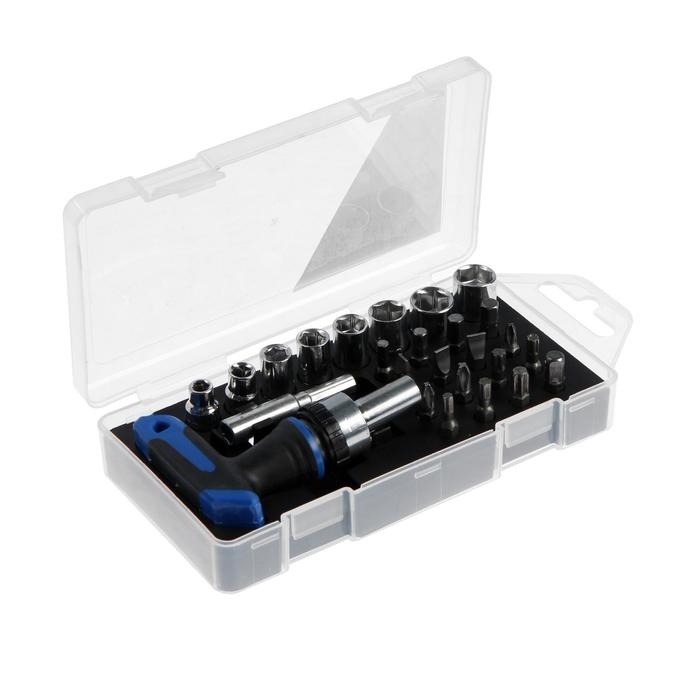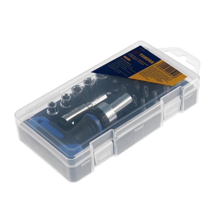 Отвертка с набором бит и торцевых головок ТУНДРА, в пластиковом кейсе, 1/4", 26 предметов