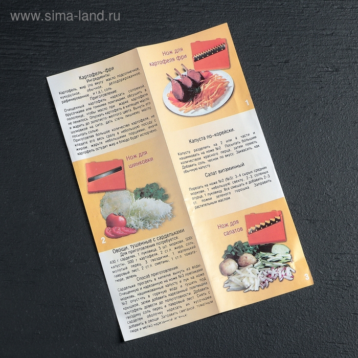 Овощерезка-терка изготовлена из пластика высокого качества, имеет эргономичную ручку и лезвия из нержавеющей стали, которые обладают коррозиестойкостью и сохраняют свою остроту в течение долгого времени. Она проста в использовании и легко моется, что делает ее идеальным инвентарем для любой хозяйки.