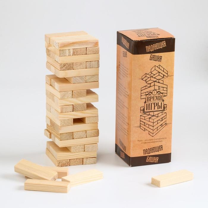 Падающая башня дженга, настольная игра "Дженга пати", с заданиями, 54 бруска, 30 х 8 см