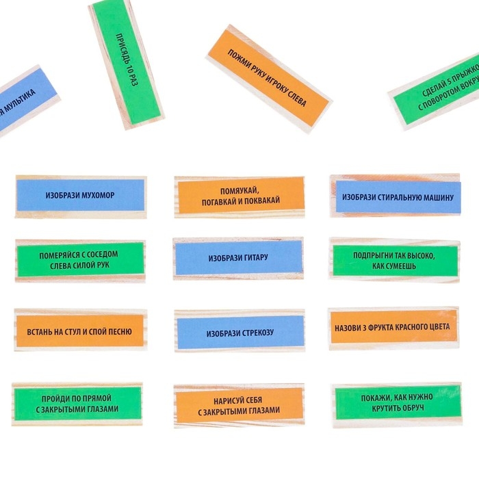 - Приклейте к каждому бруску башни наклейку с заданием.