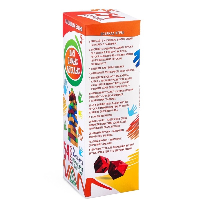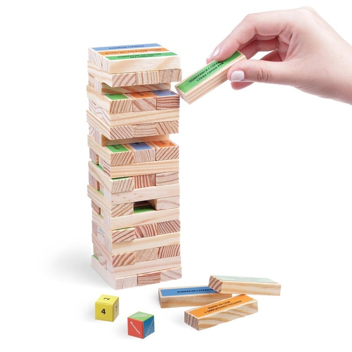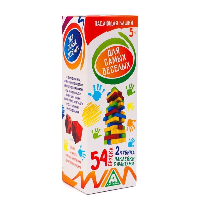 Падающая башня-дженга «Для самых веселых» с фантами, 54 бруска, 5+