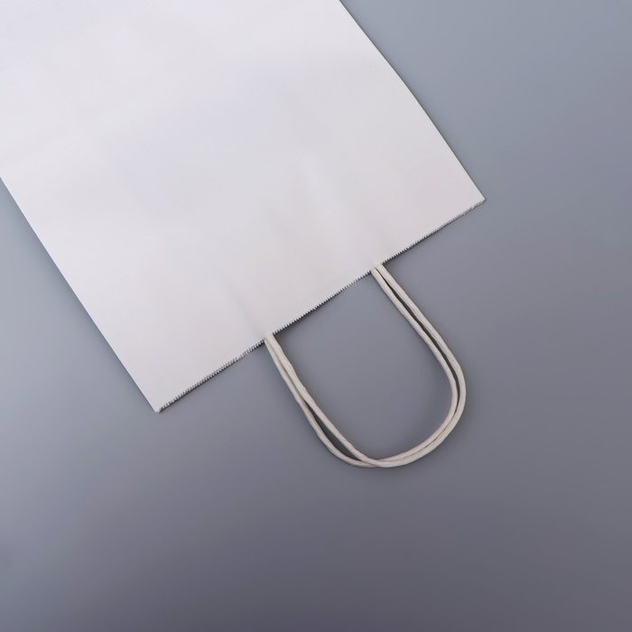 Чистый белый цвет пакета придает ему универсальный и элегантный вид, делая его идеальным для подарков, покупок или корпоративных мероприятий. Круглая ручка, выполненная из прочного материала, обеспечивает удобное и комфортное держание, позволяя легко переносить пакет.