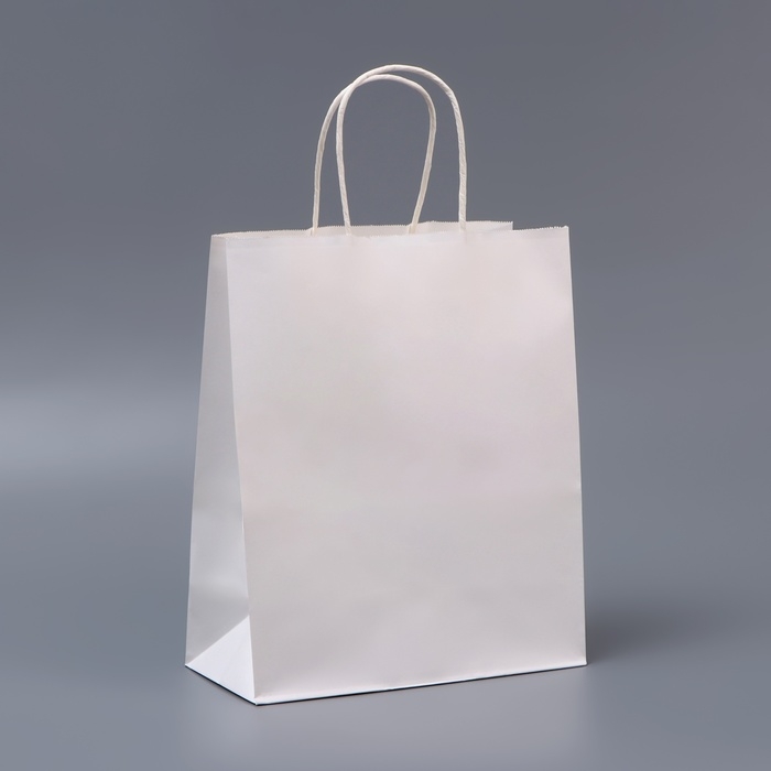 Белый бумажный пакет без печати с круглой ручкой и плотностью 120 г/м² — это стильное и экологичное решение для упаковки и переноски различных товаров. Изготовленный из прочной бумаги с плотностью 120 г/м², этот пакет отличается высокой устойчивостью к разрывам и износу, обеспечивая надежную защиту содержимого.