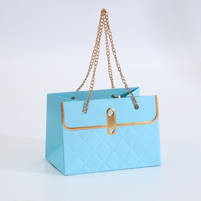 Пакет для цветов, ручка цепь, "Лазурный", с золотым тиснением, 15 х 10,5 х 10 см