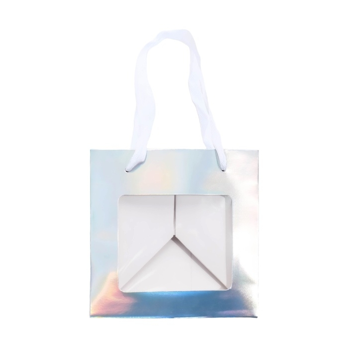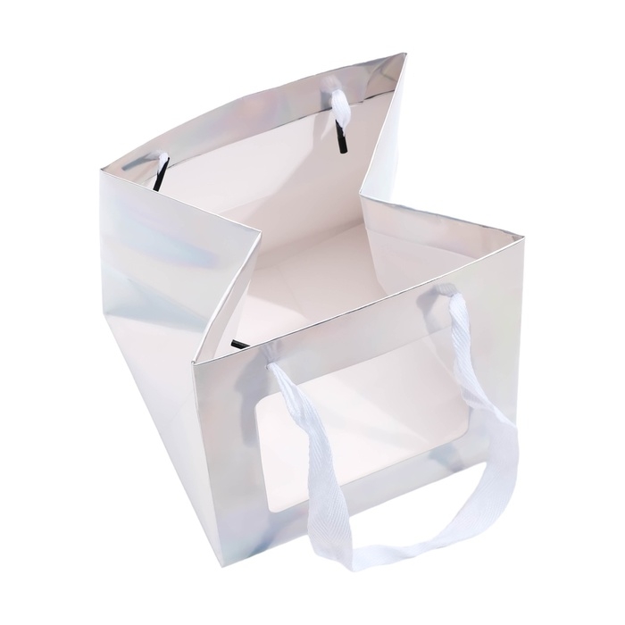 Пакет для торта с квадратным дном и окном, голографический - это стильное и функциональное решение для упаковки и транспортировки тортов.