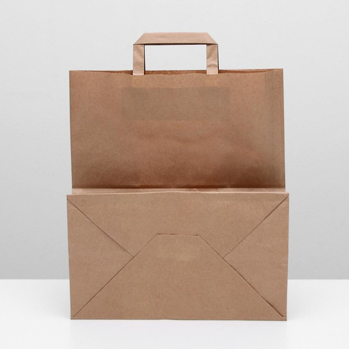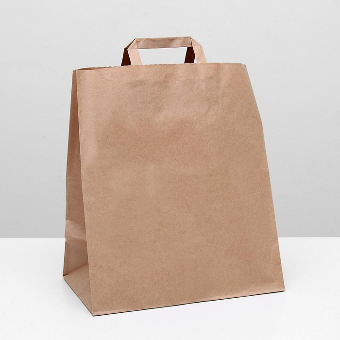 Пакет крафт без печати 32 х 20 х 37 см, плоская ручка, набор 20 шт.