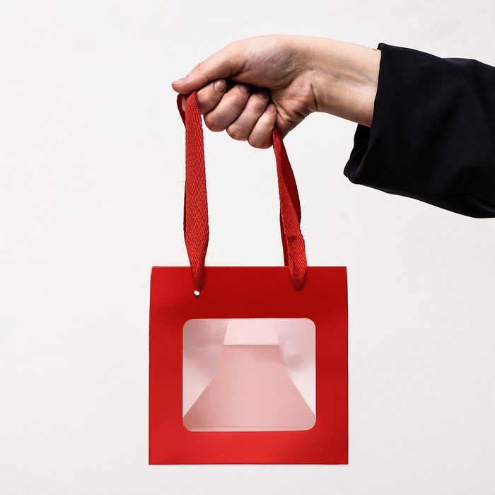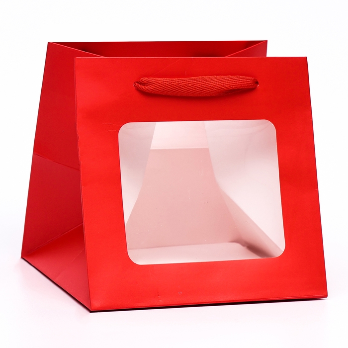 Пакет крафт с квадратным дном и окном, 15 х 15 х 15 см, красный, 1шт