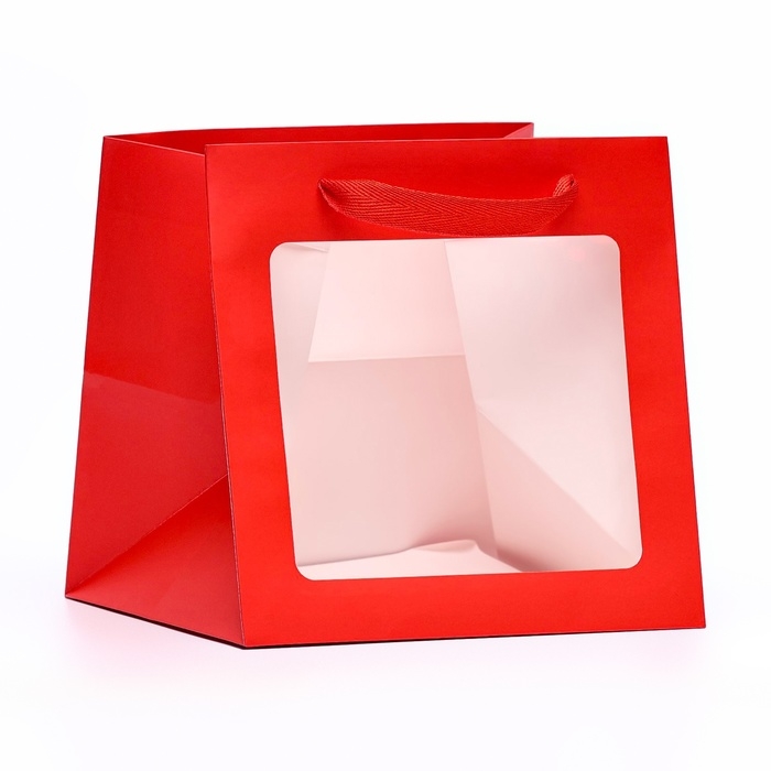 Пакет крафт с квадратным дном и окном, 20 х 20 х 20 см, красный