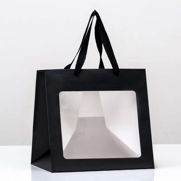 Пакет крафт с квадратным дном и окном размером 25 х 25 х 25 см черного цвета - это не только стильный и удобный аксессуар, но и отличное дополнение к вашим тортам, десертам и цветам.
