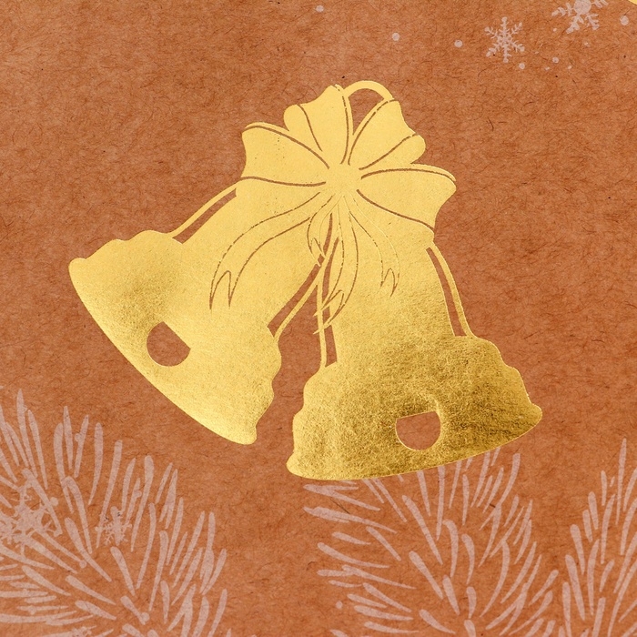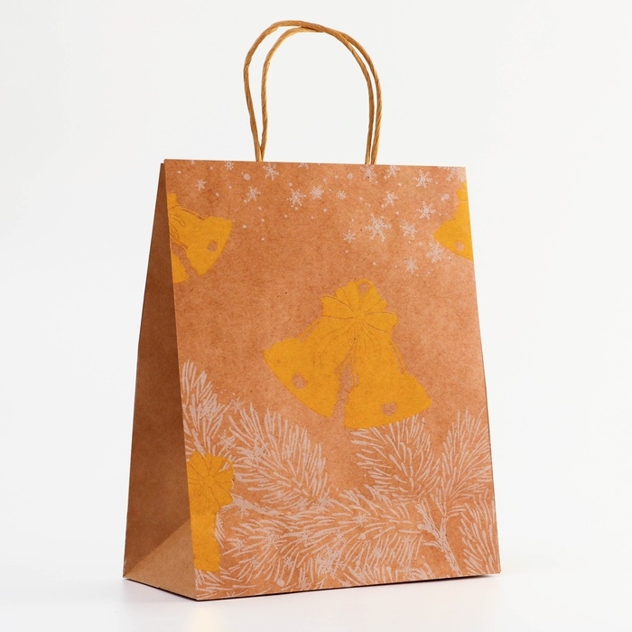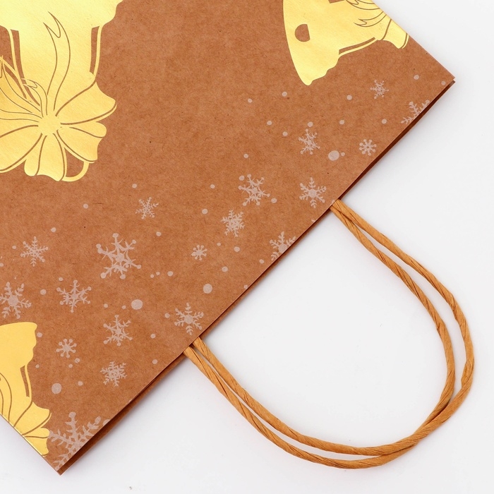 Пакет крафт с золотым тиснением, круглая ручка, "Колокольчик" 33 х 25 х 12 см, 120 г