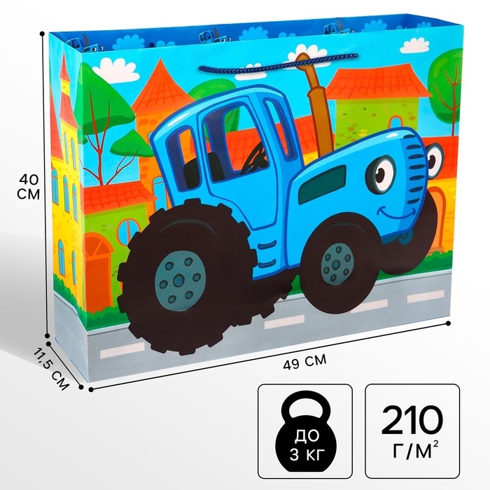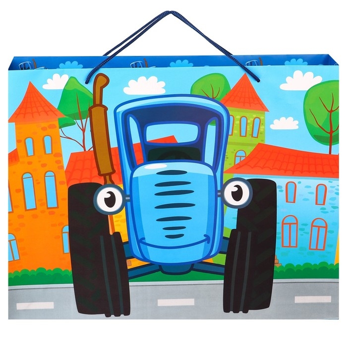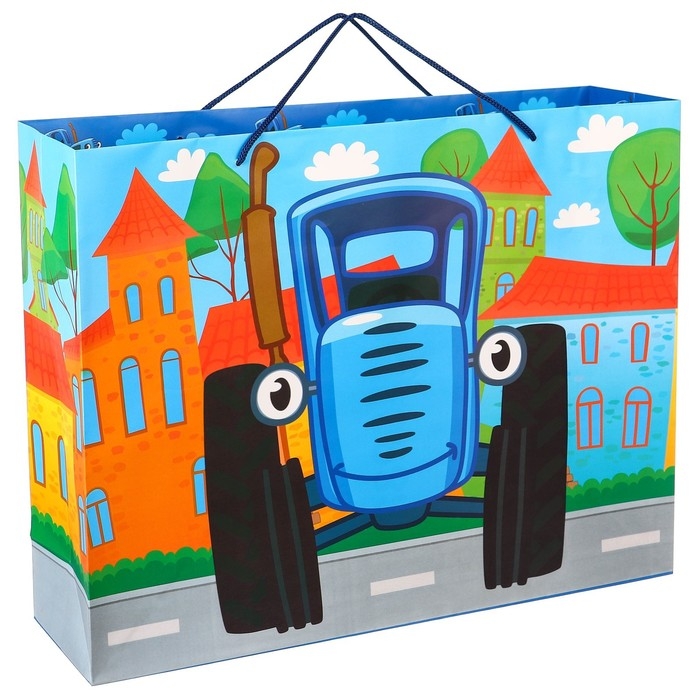 Пакет ламинированный горизонтальный, 40 х 31 х 11.5 см, Синий трактор