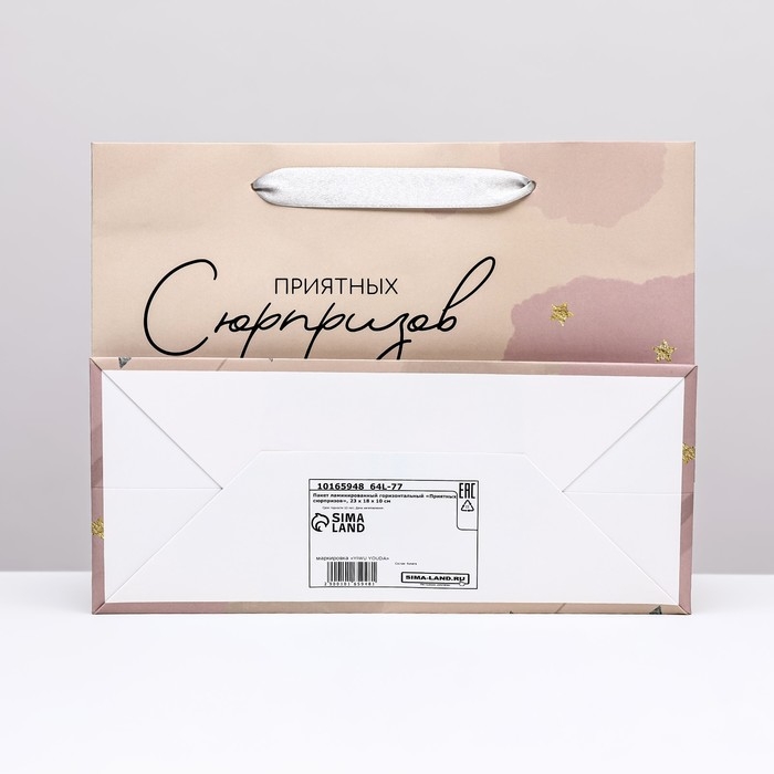 Пакет ламинированный горизонтальный "Приятных сюрпризов", 23 х 18 х 10 см
