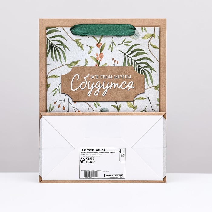 Пакет ламинированный вертикальный "Мечты сбудутся!", 18 х 23 х 10 см