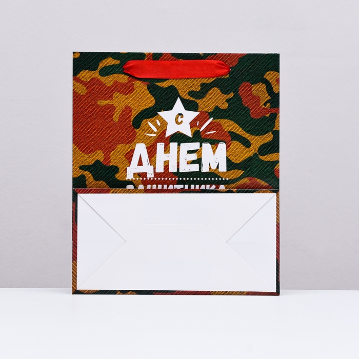 Пакет подарочный ламинированный горизонтальный, упаковка, «С 23 февраля», ML 25х 21 х 8 см