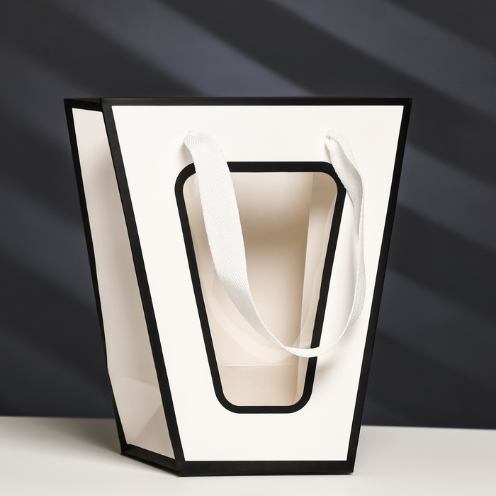 Пакет-переноска для цветов 10 × 10 × 20 х 18 см, белый с каймой