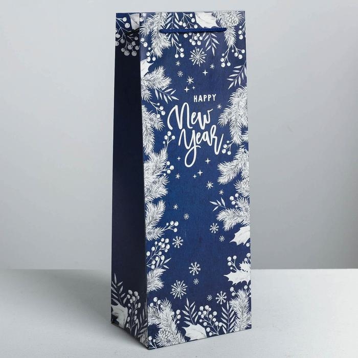 Пакет под бутылку крафтовый «Happy New Year!», 13 х 36 х 10 см, Новый год