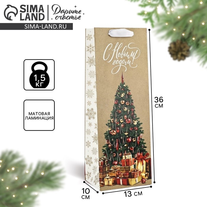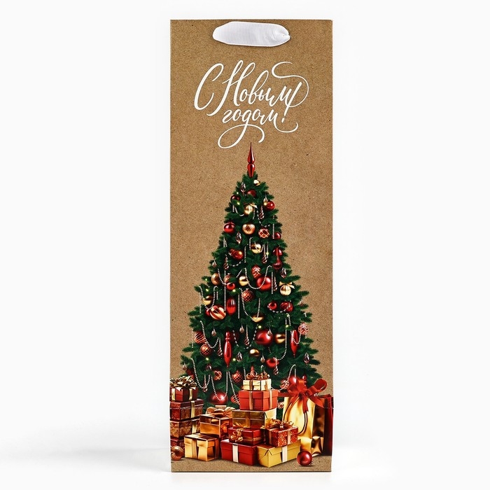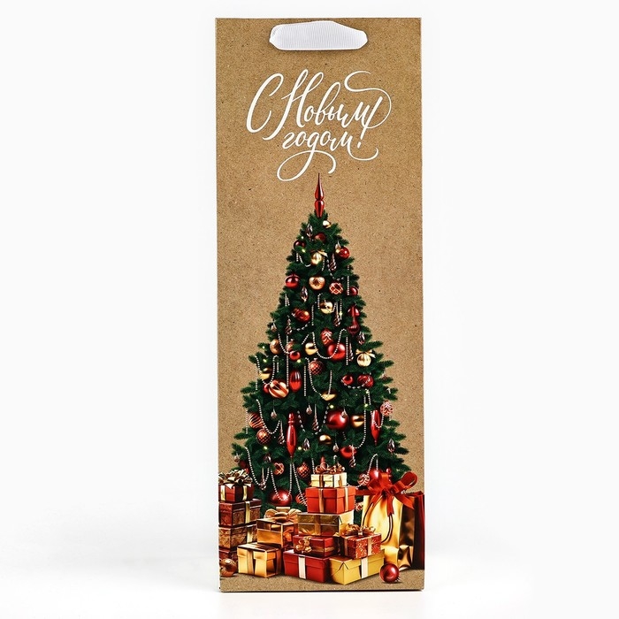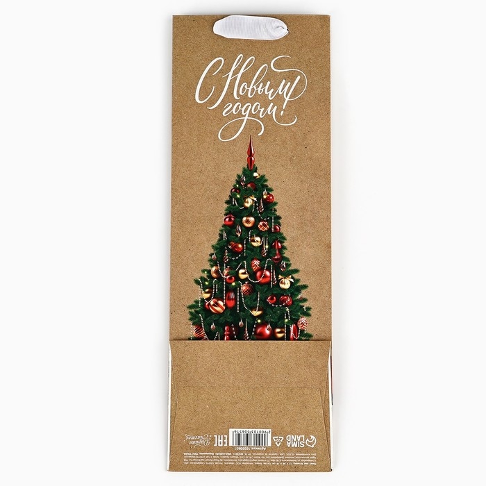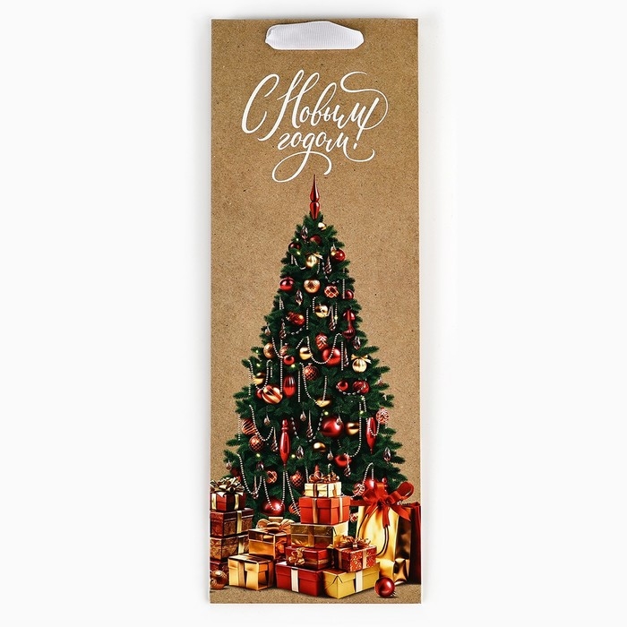Пакет под бутылку «Новогодние подарки», ёлка, 13 х 36 х 10 см , Новый год