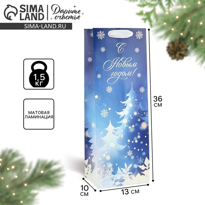 Пакет под бутылку «Новогодняя ночь», ёлки, 13 х 36 х 10 см , Новый год