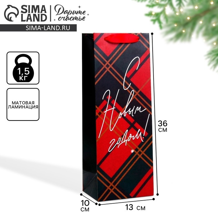 Пакет под бутылку «С новым годом!», 13 х 36 х 10 см, Новый год