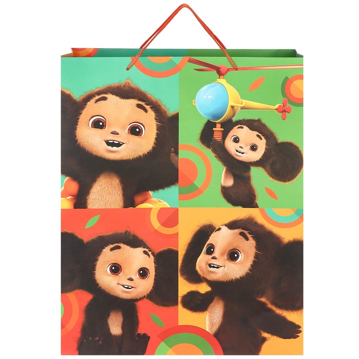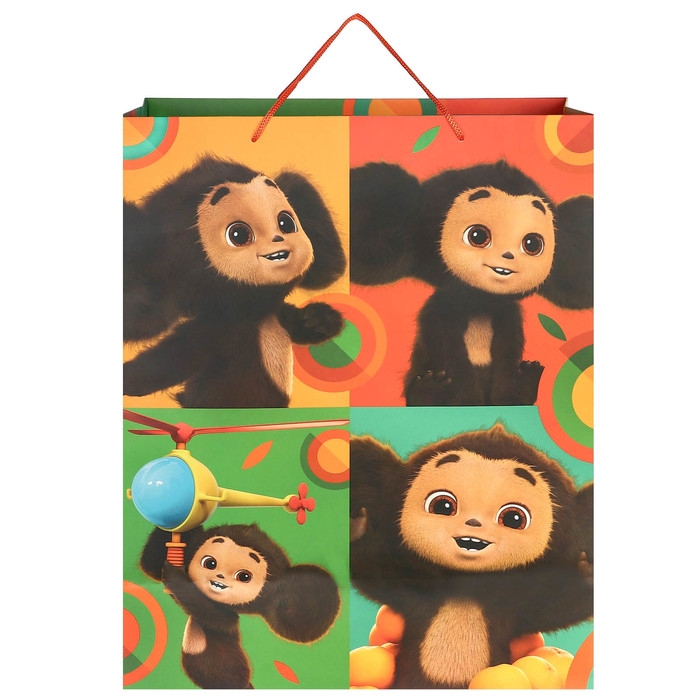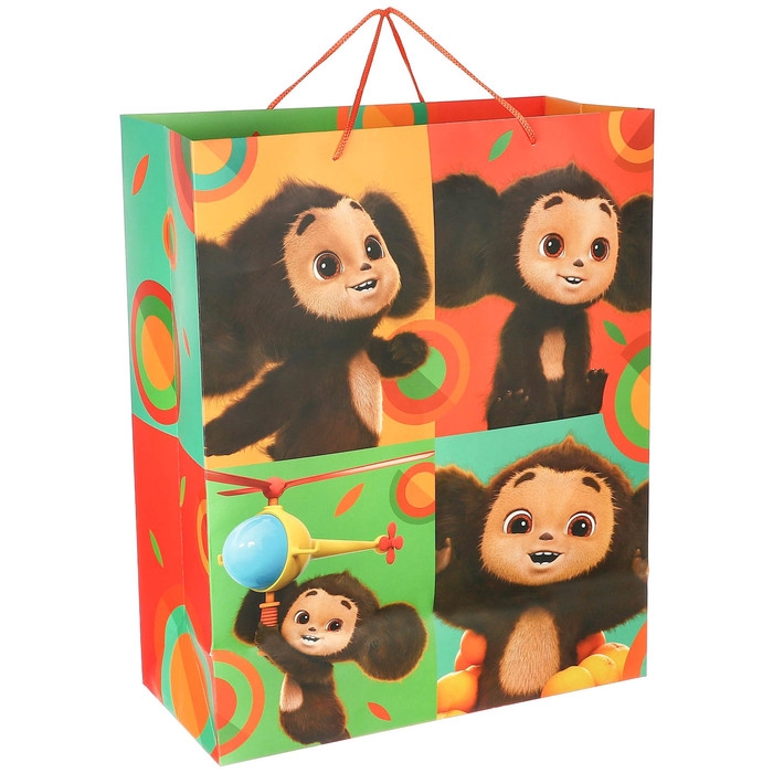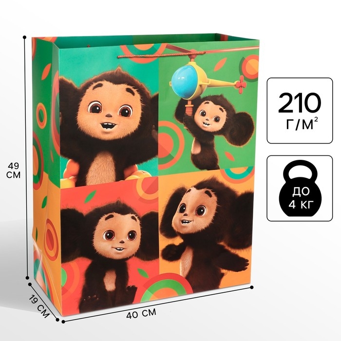 Пакет подарочный, 49х40х19 см, упаковка, Чебурашка