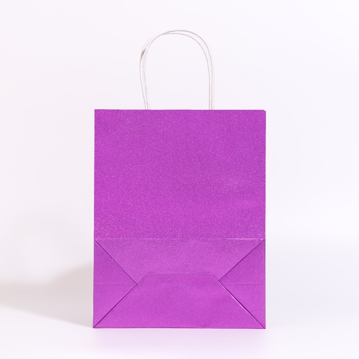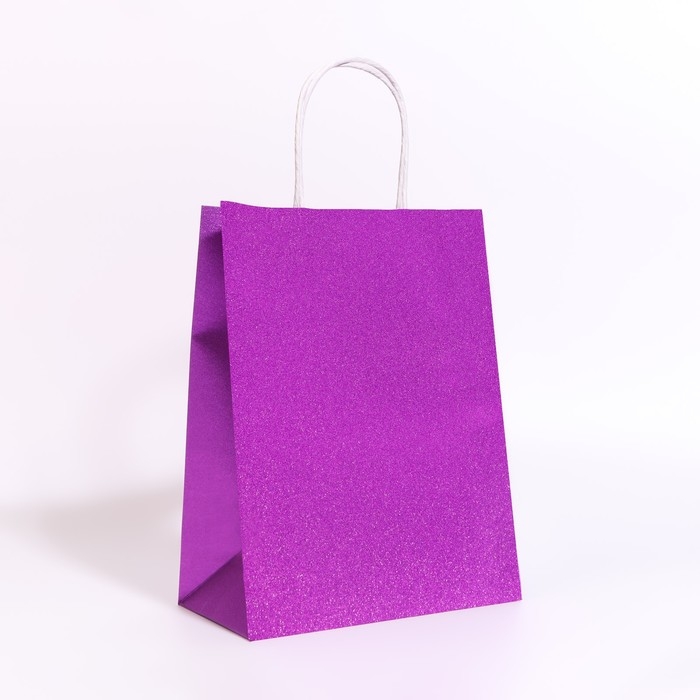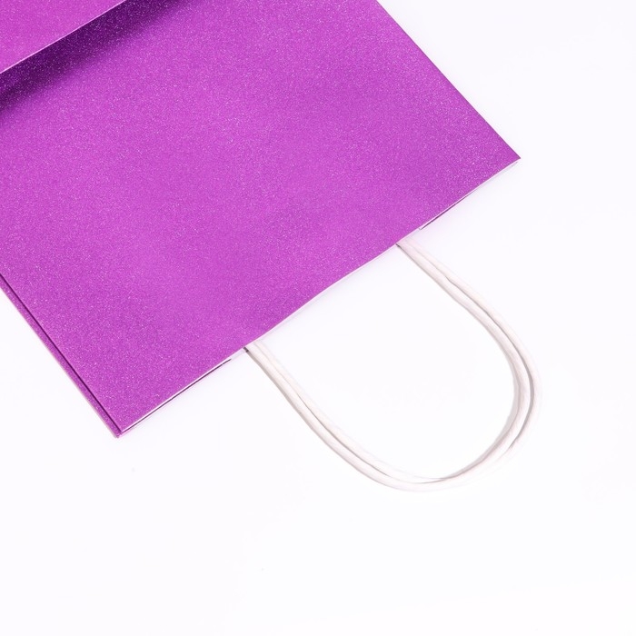 Пакет подарочный бумажный с глиттером сиреневый, 21 х 11 х 27 см