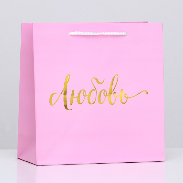 Пакет подарочный крафт "Любовь", розовый, 22,5 х 23 х 10 см, набор 12 шт.