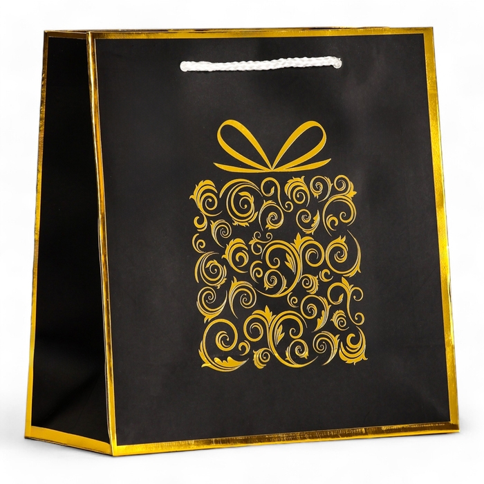 - Фольгированное покрытие с тиснением придает пакету роскошный и изысканный вид, что делает его отличным выбором для особых случаев.